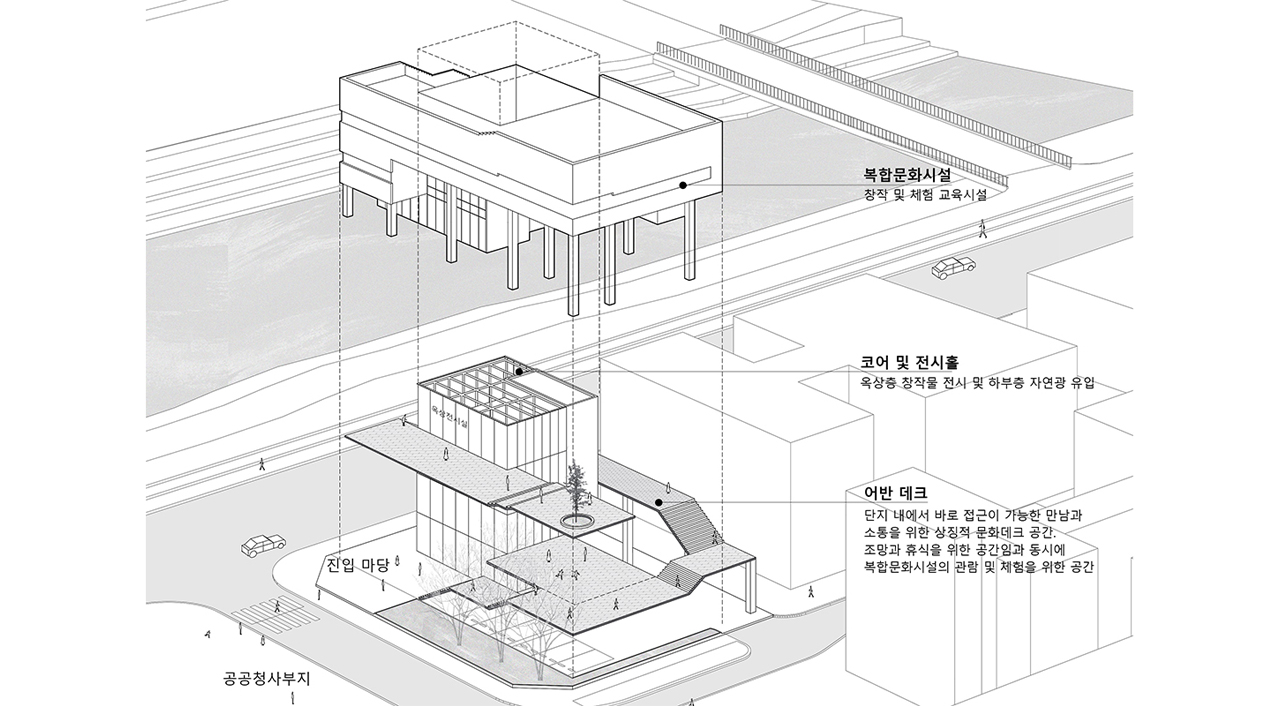 조닝별 특화된 홀과 개방형 프로그램은 데크로 확장된다.