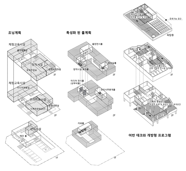 외부 전시공간이나 실내 프로그램의 확장 공간으로 사용한다.